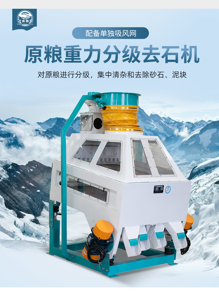 比重分級(jí)去石機(jī)主要用于糧食加工廠及飼料加工廠,從 稻谷、 小麥、大米、大豆、玉米、芝麻、油菜籽、麥芽等物料中去石也可從其它顆粒,化工塑料中去石,是現(xiàn)代糧食加工企業(yè)理想先進(jìn)設(shè)備。